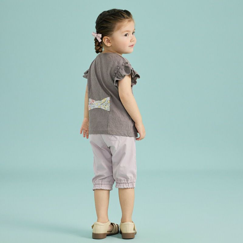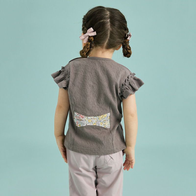 【仕様】袖に切替フリルを付けたガーリー仕様で全体的に華やかな印象に仕上げています。 【備考】アップリケ、後ろリボンは商品により柄の出方が異なります。100cm~120cmサイズは肩開きなし。