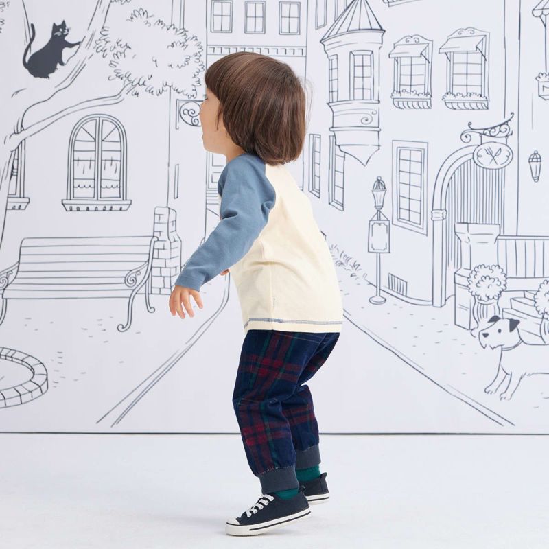 【素材】やわらかな綿100%フライス素材は生地の伸縮があるので着心地がよく、ふっくらとした風合いが特徴です。洗濯もしやすいので毎日のように使えて、通園、通学着としても活躍すること間違いなしの1着です。