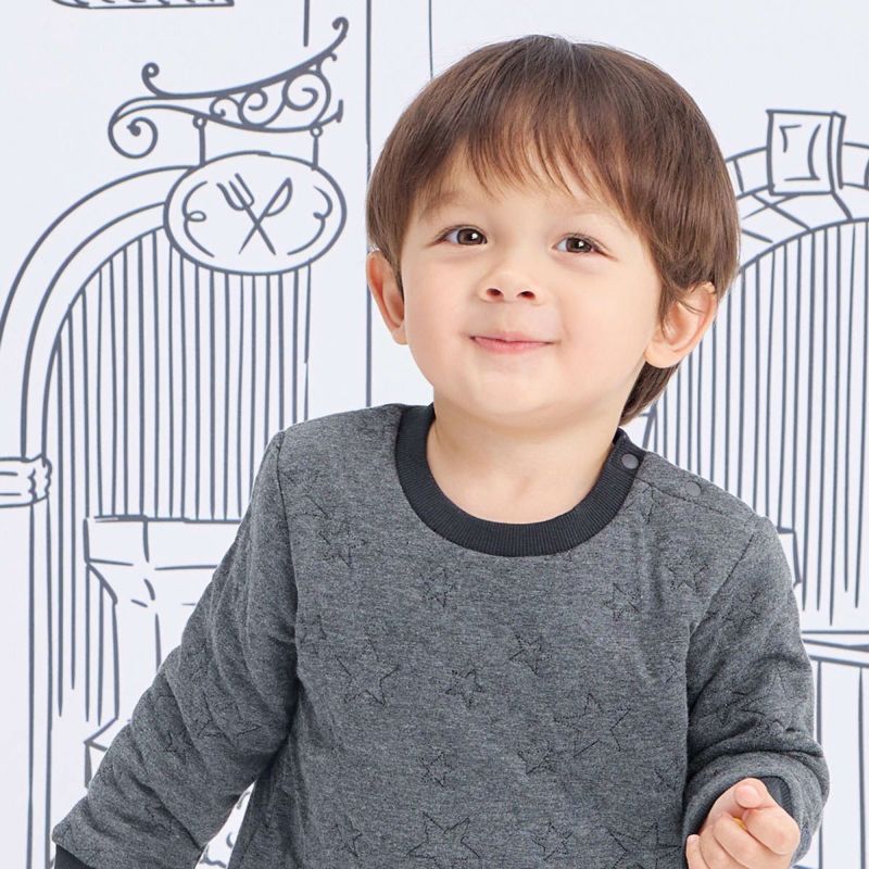 【備考】100サイズ~肩開き無し、同じ星柄あったかキルト素材のアイテムで兄弟姉妹とリンクコーデが可能です。(品番: