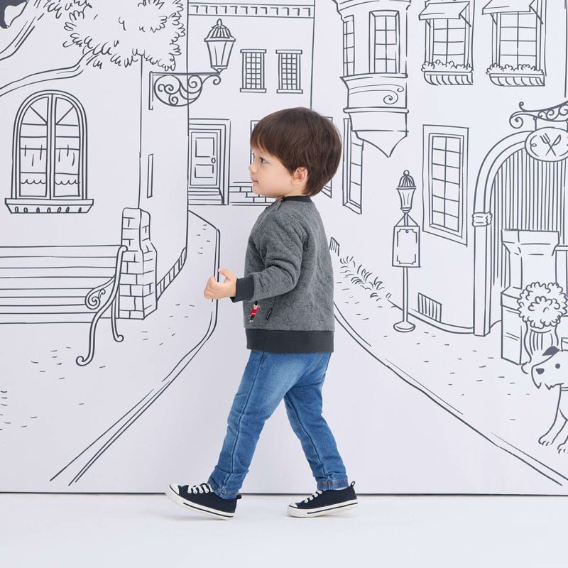 【仕様】裾、袖口はリブ仕様のコンビミニ定番のあったかキルトトレーナー。様々なシーンで活躍する男女ともおススメの一着です。