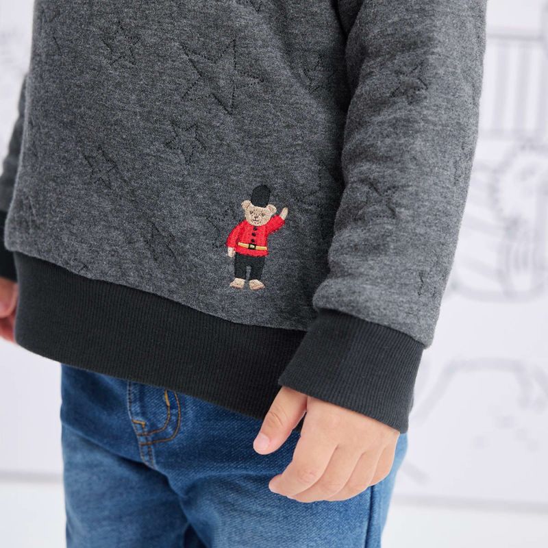 【柄】生地同系色で目立ち過ぎない星柄がコーディネートもしやすくオシャレで特徴的なあったか素材。左裾にはロンドンベアの刺繍を施して着用時のワンポイントに。