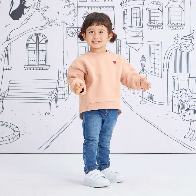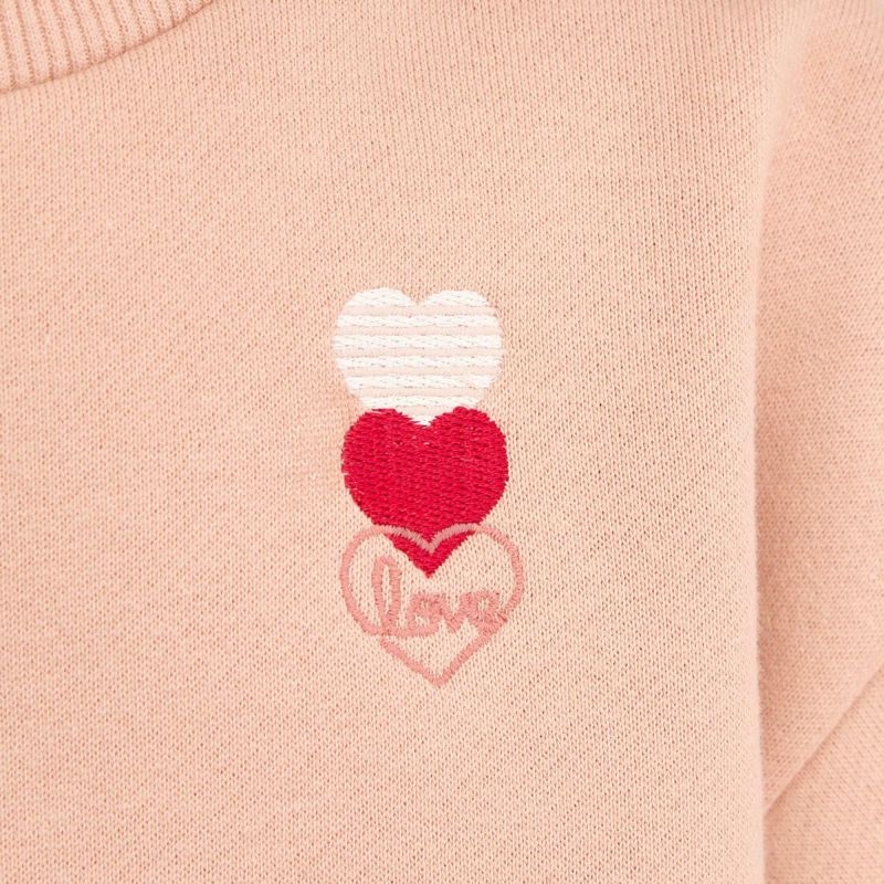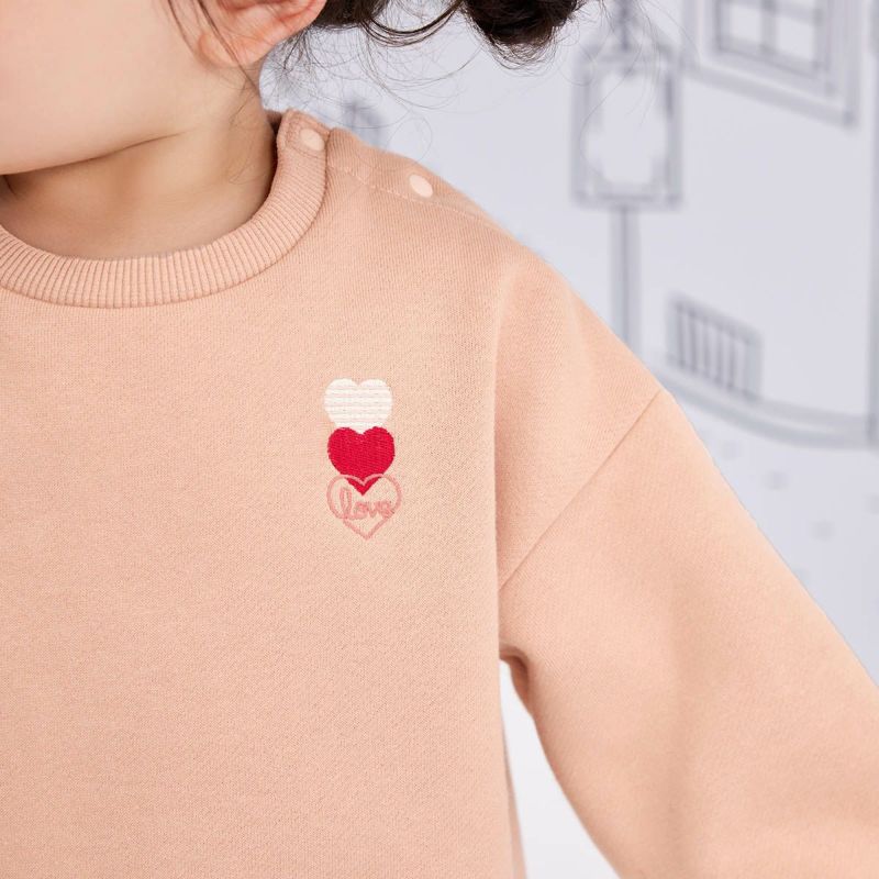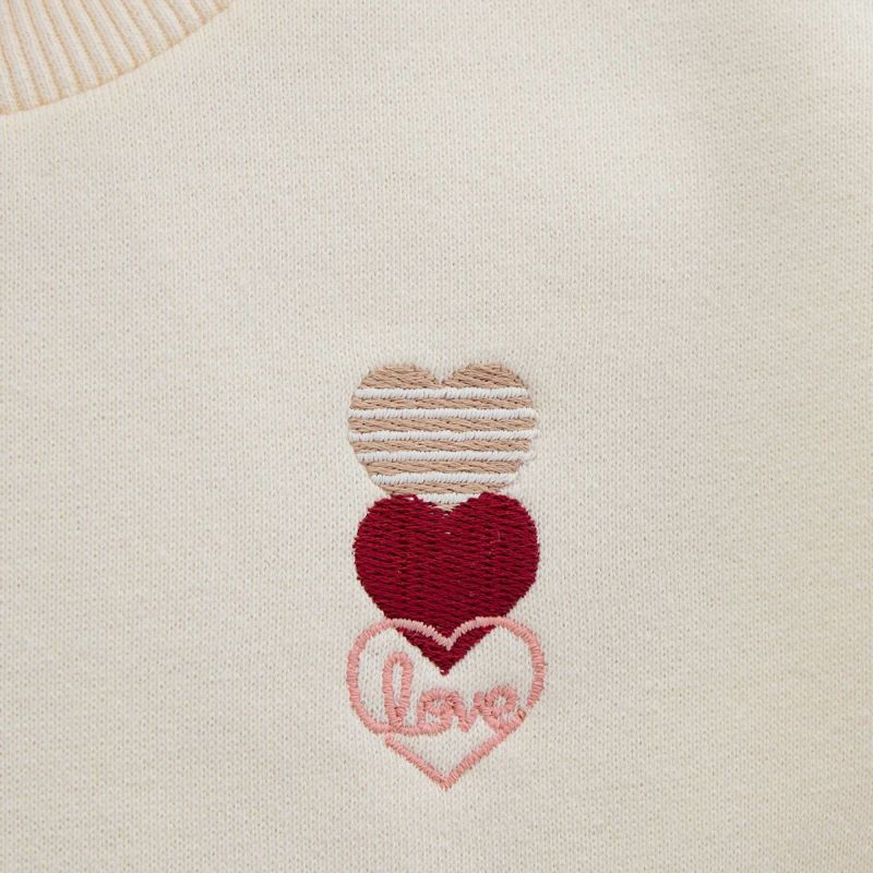 【カラー】女の子が着やすいピンクとアイボリーの2色展開、左胸のハート刺繍がラブリー感を演出。