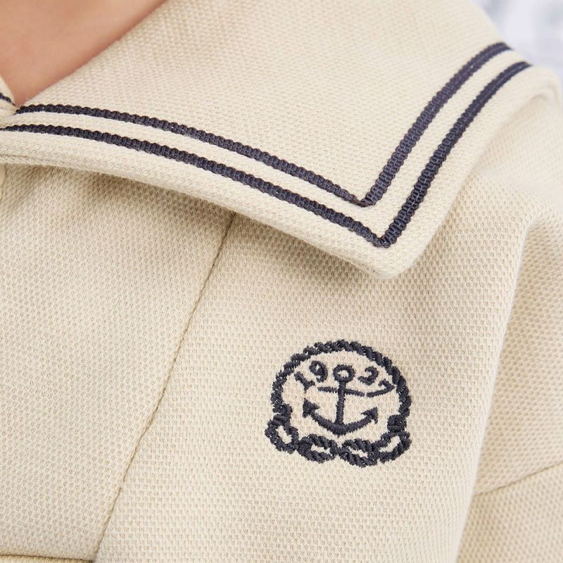 【カラー】マリンテイストの雰囲気に合うように左胸にはアンカーの刺繍を採用しました。着回しのしやすいライトベージュとネイビーの2色展開で男女ともにおススメです