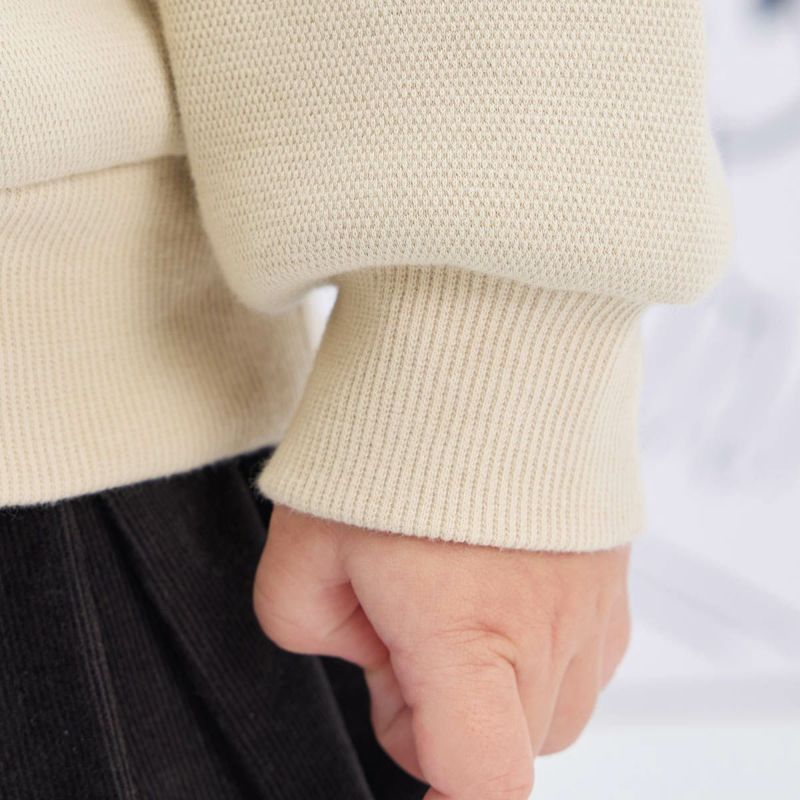 本体/綿75%ポリエステル20%ポリウレタン5%(裏毛裏起毛)、リブ/綿95%ポリウレタン5%(スパンテレコ)