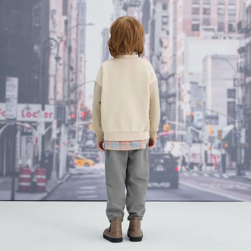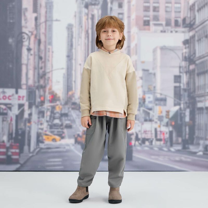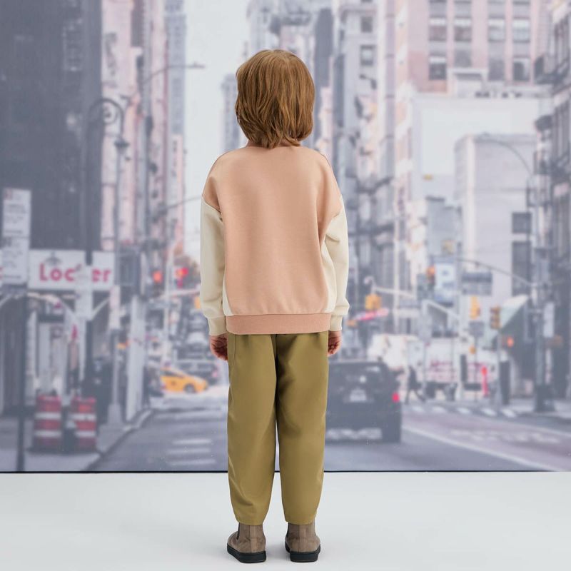 【仕様】目を引くオシャレなデザインのオーバーサイズシルエットの切り替えトレーナーはヴィンテージライクで、110~140サイズ展開です。