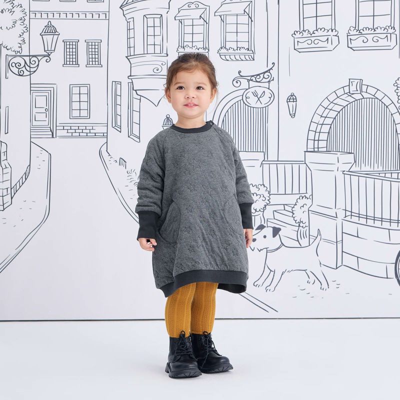 【仕様】長めの袖口リブと丸みのあるシルエットが特徴のワンピース。着丈はひざ丈なので合わせやすく、着回ししやすい1枚です。