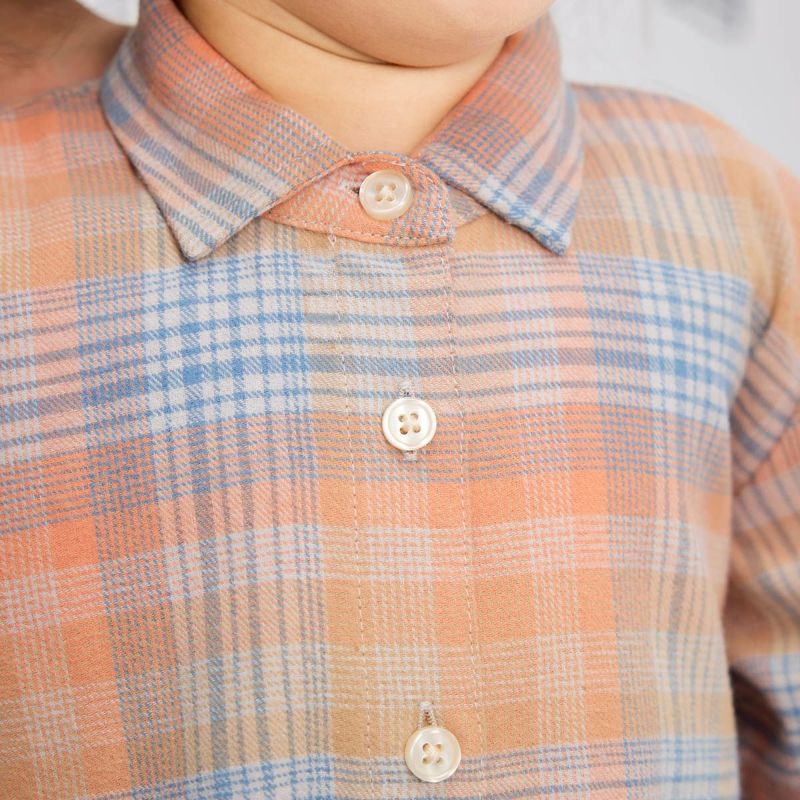 【素材】表面に微起毛加工が施された、ふんわりと柔らかく肌触りの良いオリジナルの綿100%ビエラチェック。薄手で軽く、秋口や春先に適しています。