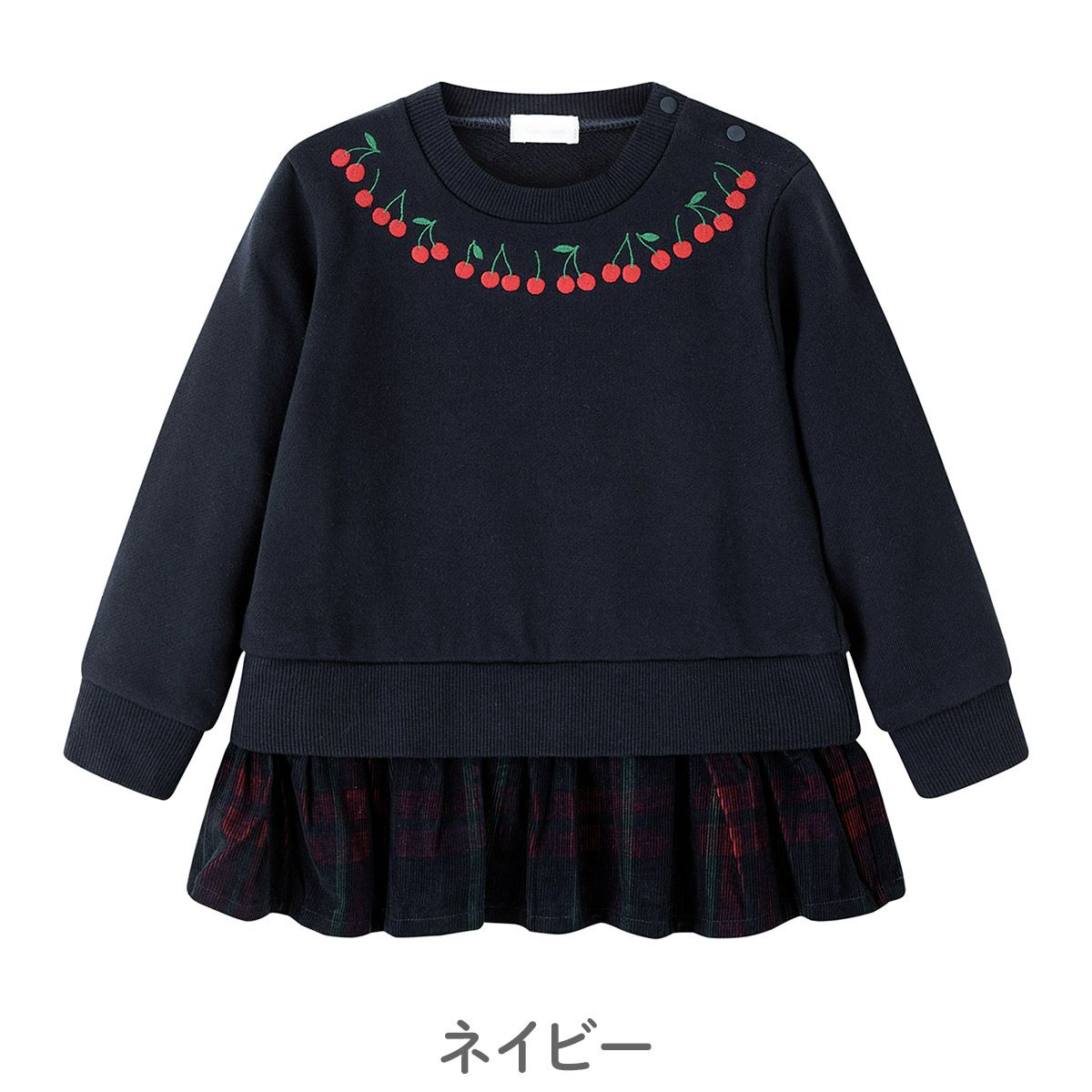 やわらか長袖ガーリーフレアトップス(さくらんぼ)