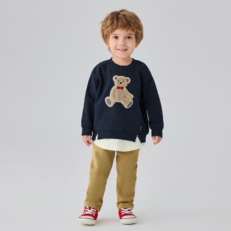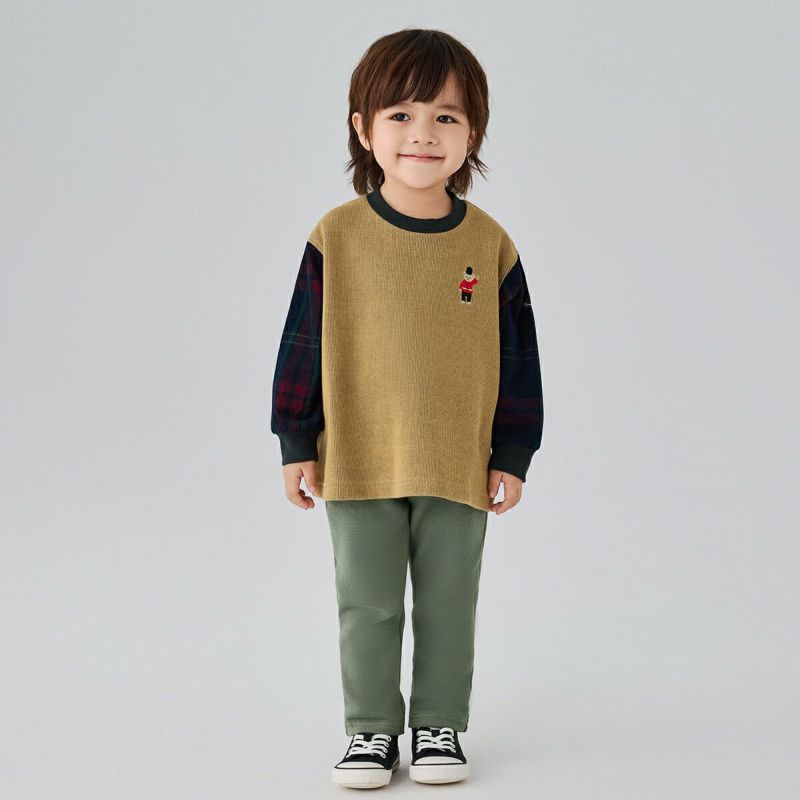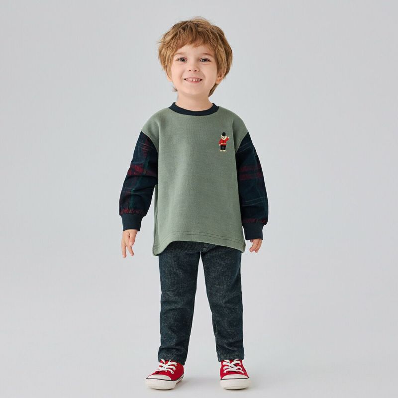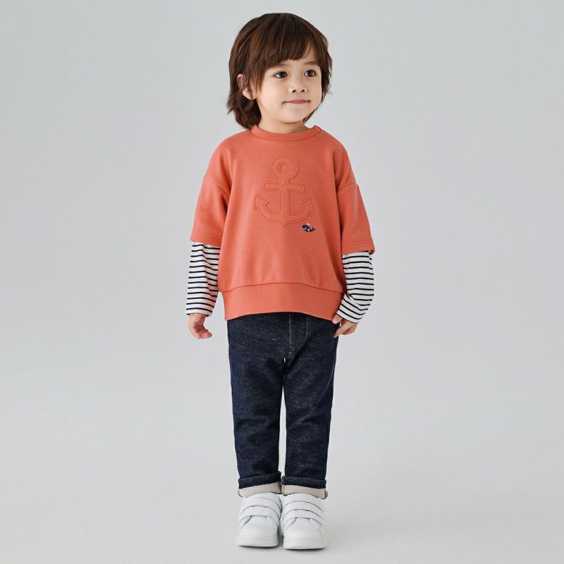 【素材】ふっくらと厚みがあって柔らかいニットライクな面と、さらりとしたフラットな面が重なりあった、表裏で表情の違うダブルフェイス素材。伸縮性のある素材なので動きやすく、男女ともにおすすめです。通園通学着からおでかけ着まで幅広く活躍すること間違いなしの1着です。