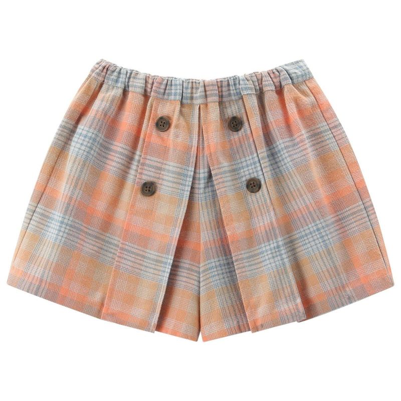 【仕様】前身頃の飾り釦がポイントになったキュロットで、後身頃にはポケットも装備。トラッドなデザインなので様々なトップスとの組み合わせも相性が良く、コーディネートのアクセントとしてもおススメの一着です。サイズは110~140サイズ展開です。
