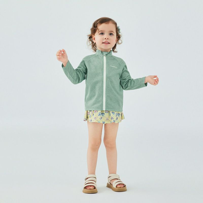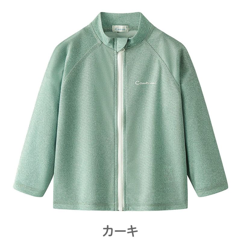通気性の良いポリエステルメッシュ素材を使用したラッシュガード。ロゴ同色のさわやかなブルーのステッチを入れたオフホワイトと、グレイッシュなメランジ調のプリント生地を使用したカーキ&ピンクは、オールマイティーに合わせやすく男女ともにおすすめです。プールやビーチなどの海辺はもちろん、街着として着ても紫外線や身体の冷えから守るのに最適です。【紫外線遮蔽率】85%(オフホワイトで検査実施)