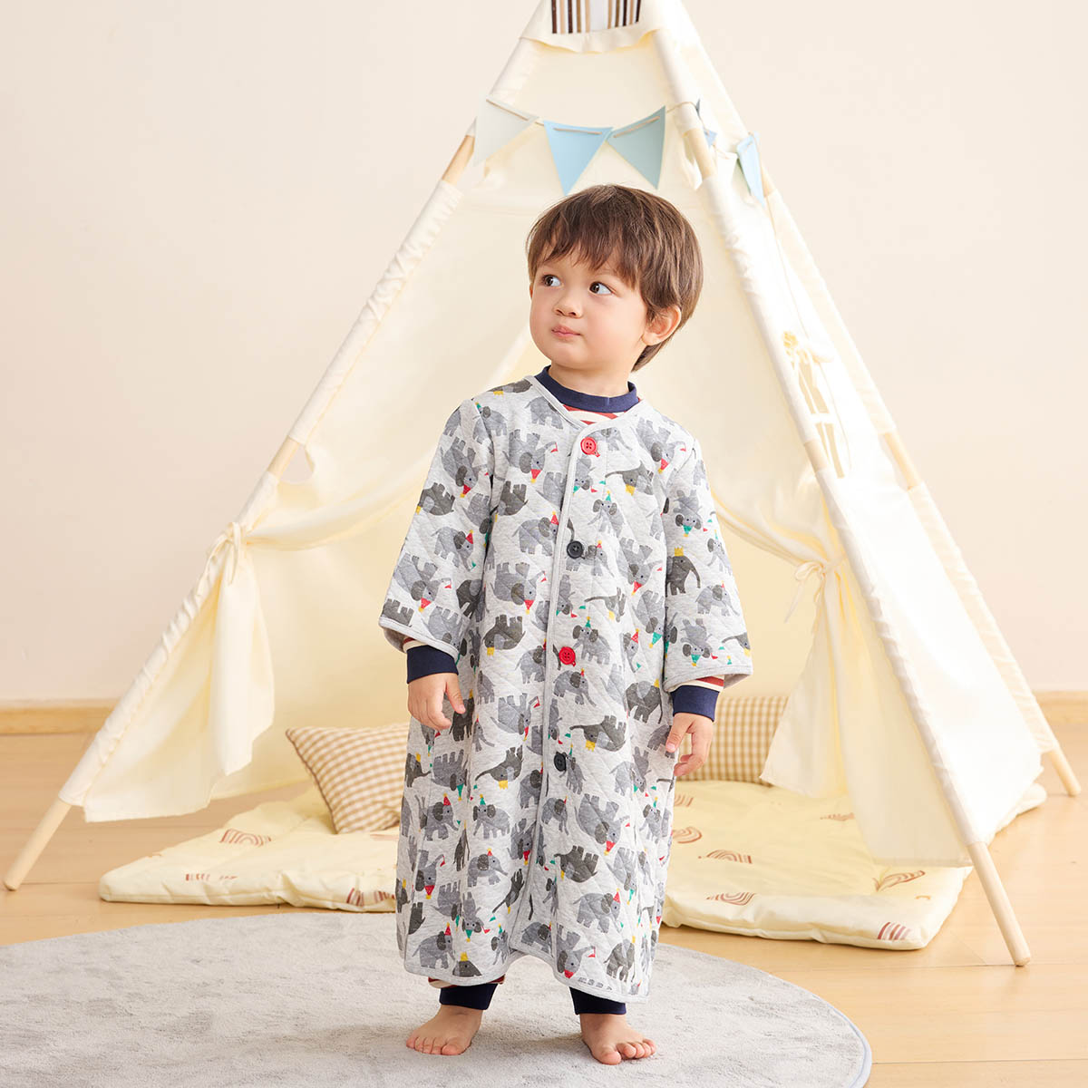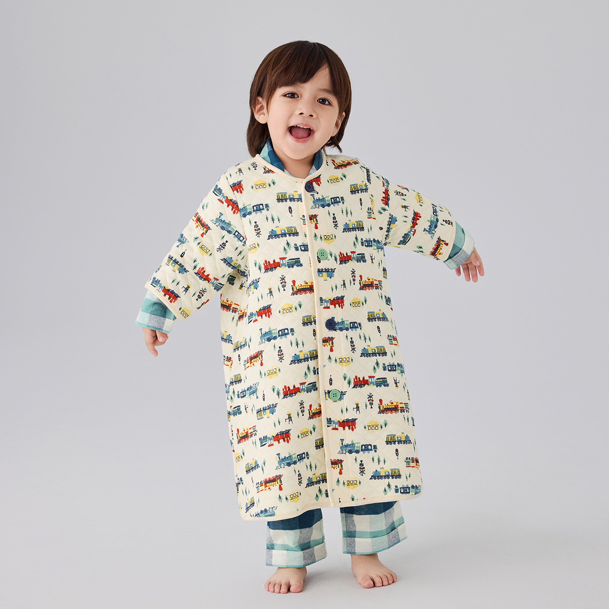 あったかキルトガウン兼用スリーパー(汽車・花うさぎ・ぞう)