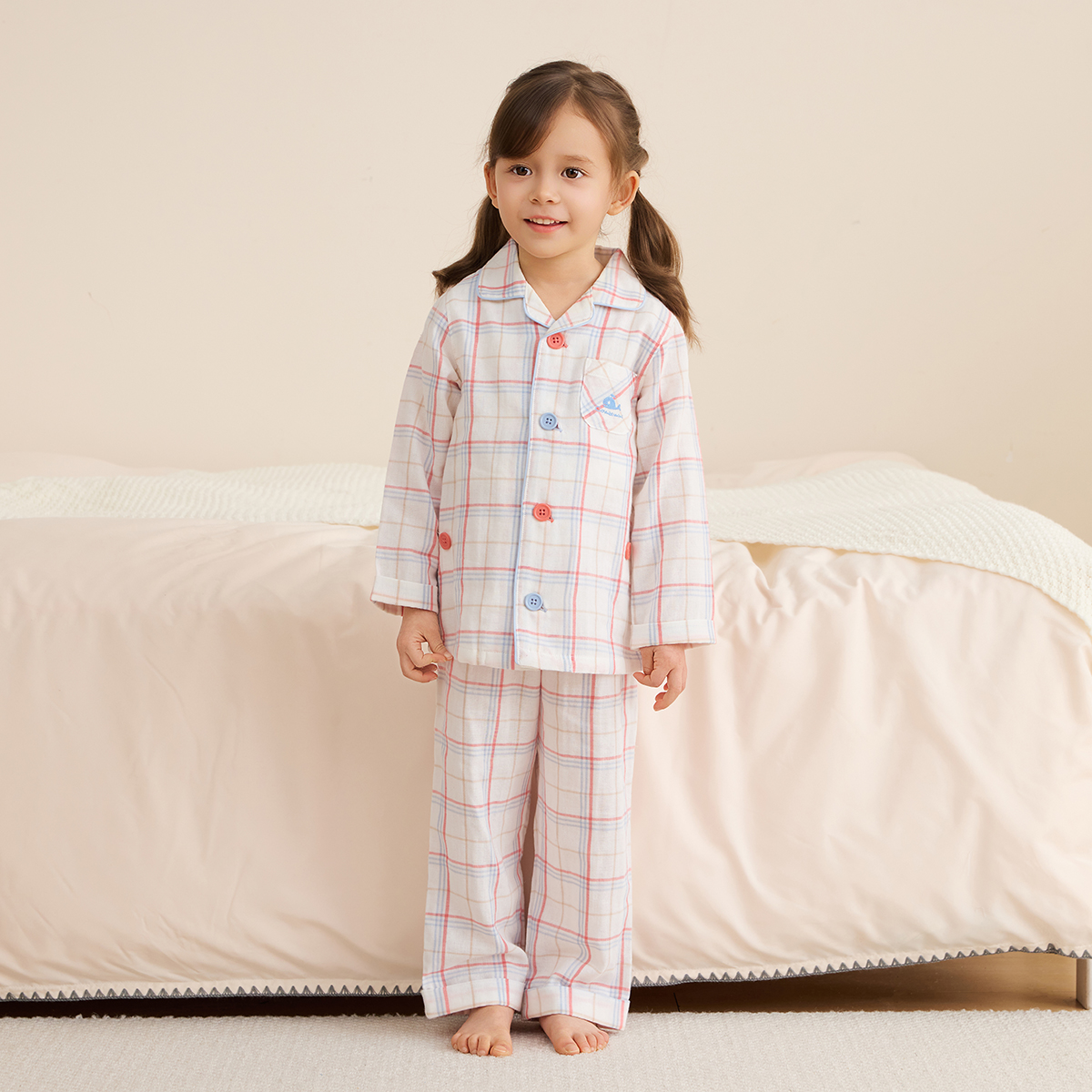 【特別価格★感謝祭限定4/13(月)まで】おなか安心ボタン付き長袖前開きガーゼパジャマ(チェック)