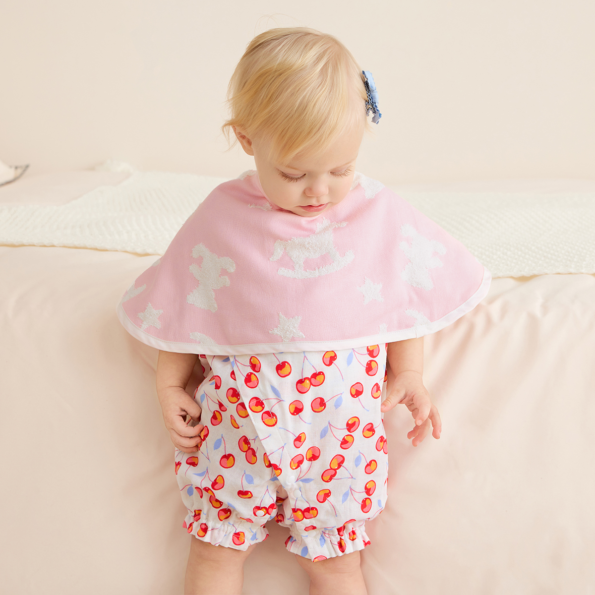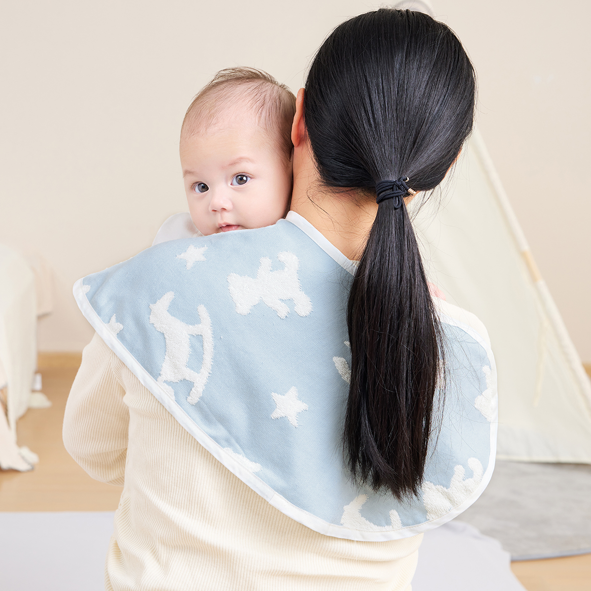 【仕様】吸水性もよく、赤ちゃんのよだれかけとして、ママの肩にミルクタイムの吐き戻し用タオルとして、マルチに使える便利なビブです。