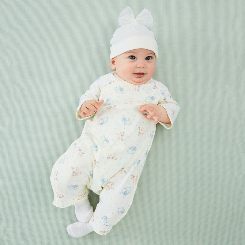 【柄】ベビーウェアらしく優しい色合いのゾウとポニーの柄はユニセックスで男女ともにおすすめです。