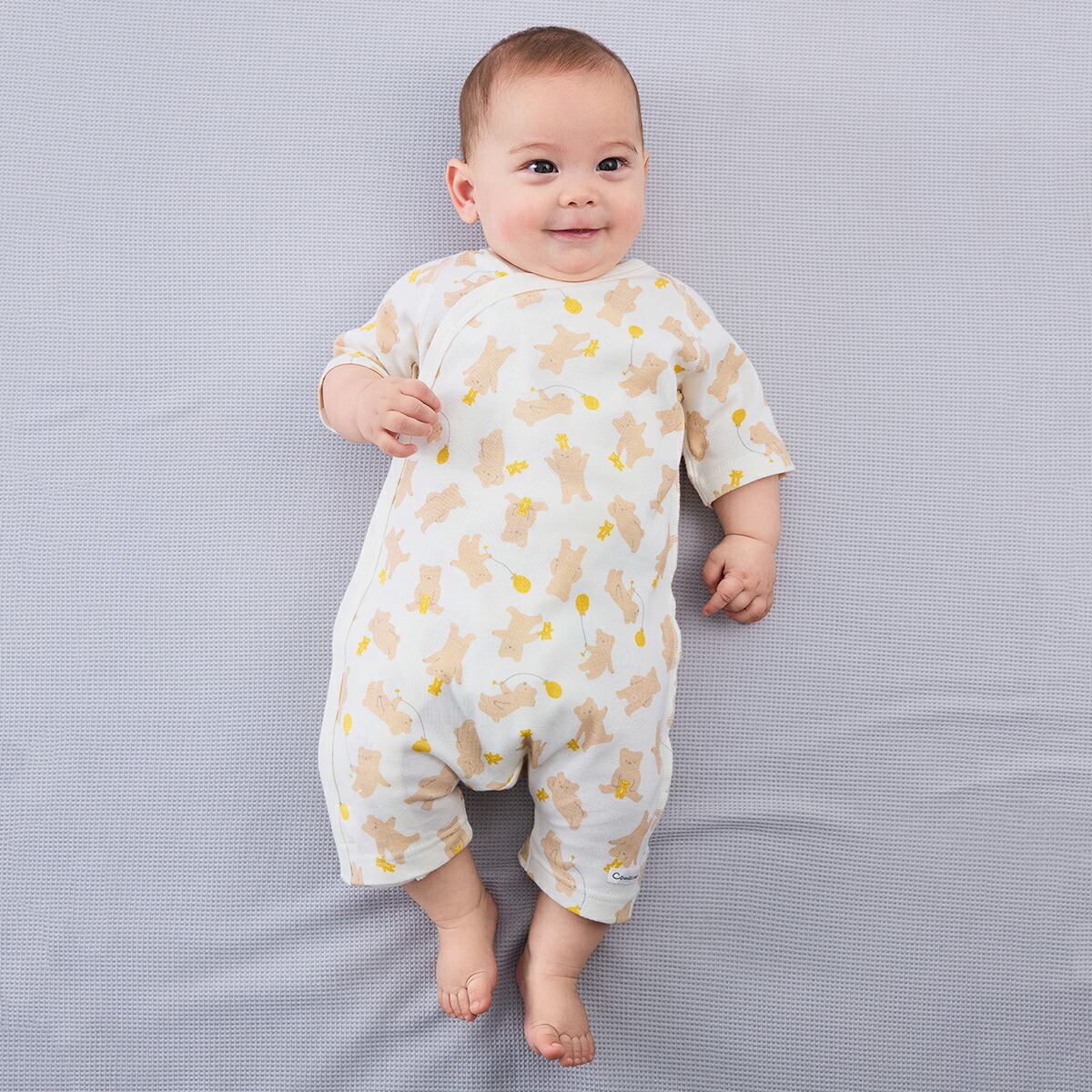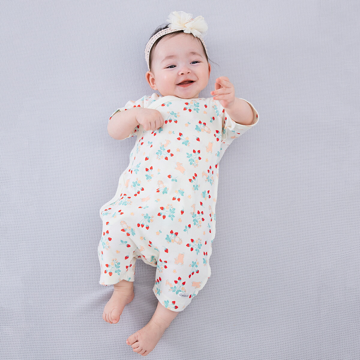 【仕様】着くずれしにくいパンツ型ウェアはチャイルドシートなどのベルトもスッキリ留めやすい!ワンタッチテープの仕様でサッとお着替え出来るので、おむつ替えがカンタン。ワンタッチ短肌着を入れて重ねてお着替えすれば、さらにカンタン!忙しい毎日でも赤ちゃんとの時間が長く取れるようにおむつ替えが時間短縮で赤ちゃんもママも笑顔に。