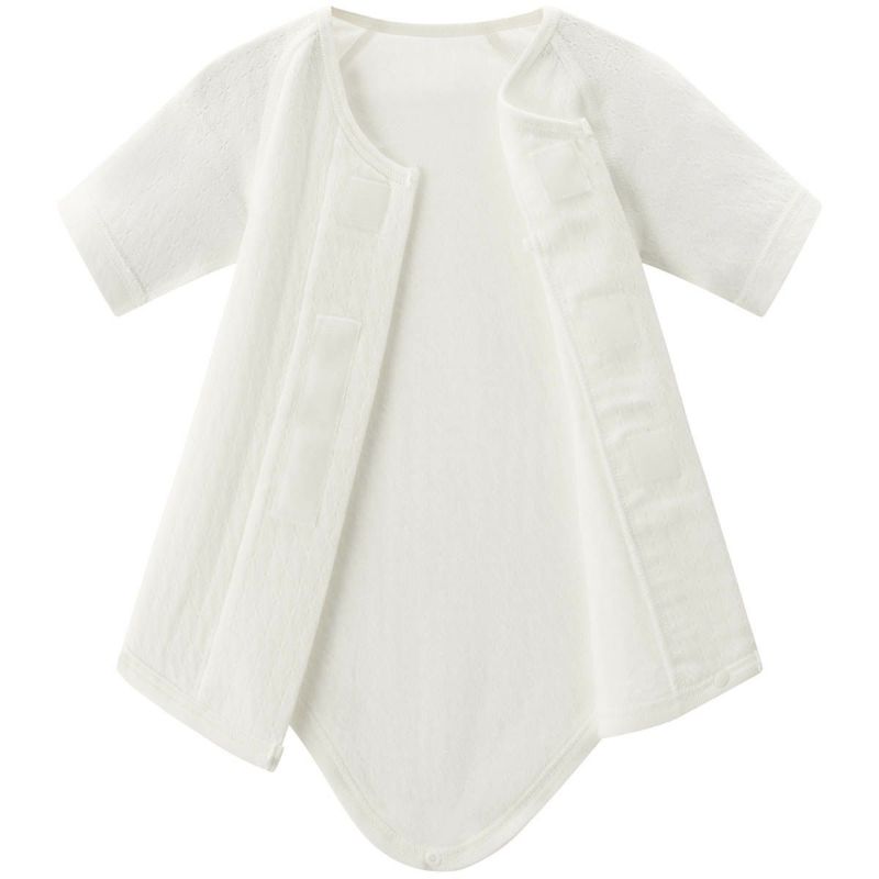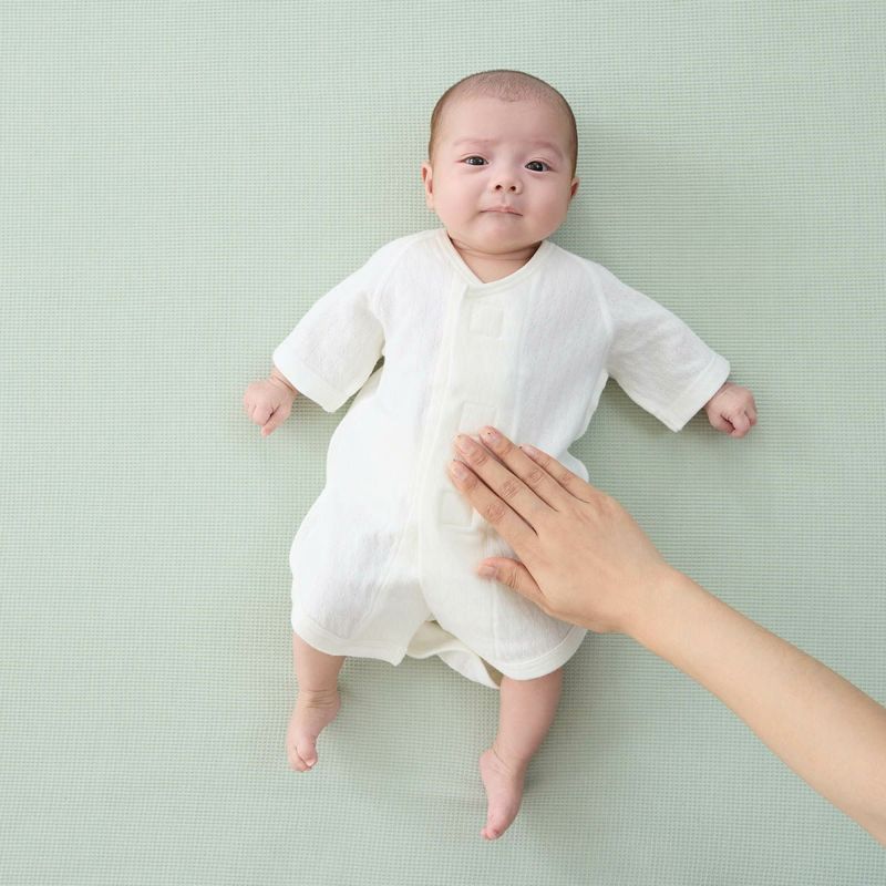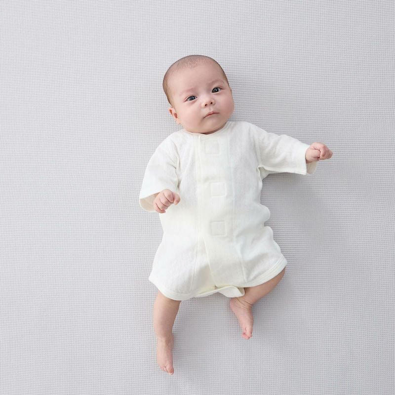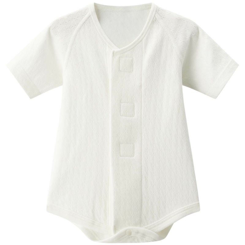 【仕様】人気のワンタッチ短肌着に新しい機能をプラス!股下ボタンで肌着のずりあがりを防止し、赤ちゃんのおなかを冷えから守ります。