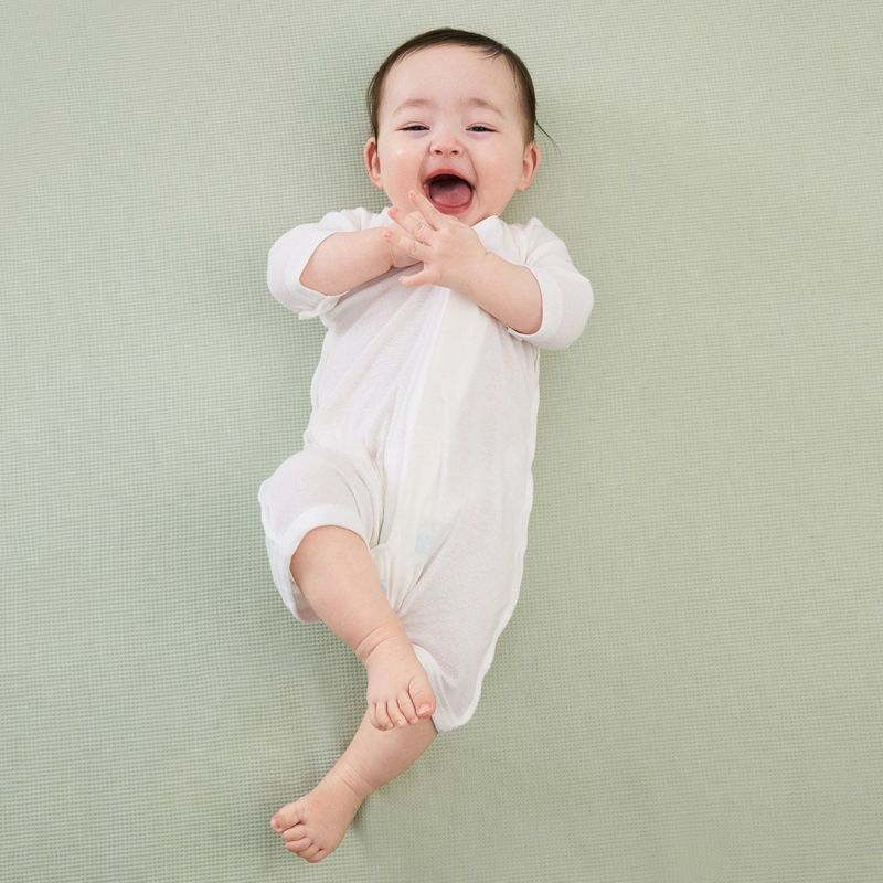 【素材】毎日洗濯する肌着は赤ちゃんが快適に着れるように伸縮性がある肌ざわりの良い綿100%フライス生地を使用。