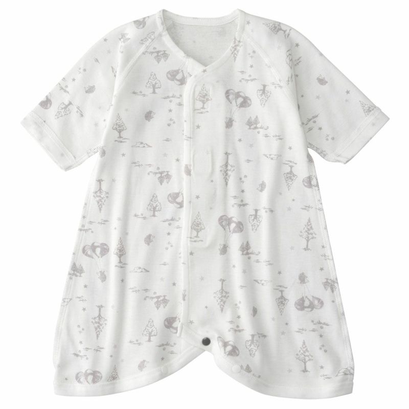 【仕様】「もっとかんたんにお着替えしたい」というママたちの声に応えて、ワンタッチテープ式のコンビ肌着が登場。足をバタつかせてもはだけない股下プランサー付きで、ワンタッチテープをさっとなでるだけで、素早くお着替えできます。内股中央のボタンは手ざわりと色を変えて、掛け違いを防止します。