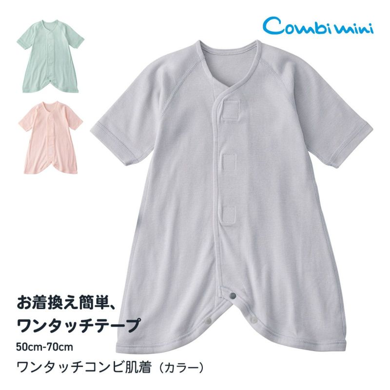 【カラー】洗い替え用に色違いで揃えたくなるキレイめなカラーのワンタッチコンビ肌着です。ナチュラルな雰囲気もあり、ベビーギフトにもおススメです。