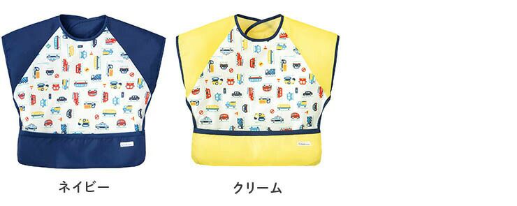 男の子のテンションを上げるくるま柄。腕を通して着るタイプなので、体を動かしてもエプロンがくるくる回ってズレてしまったり、外されてしまったりする心配がありません。