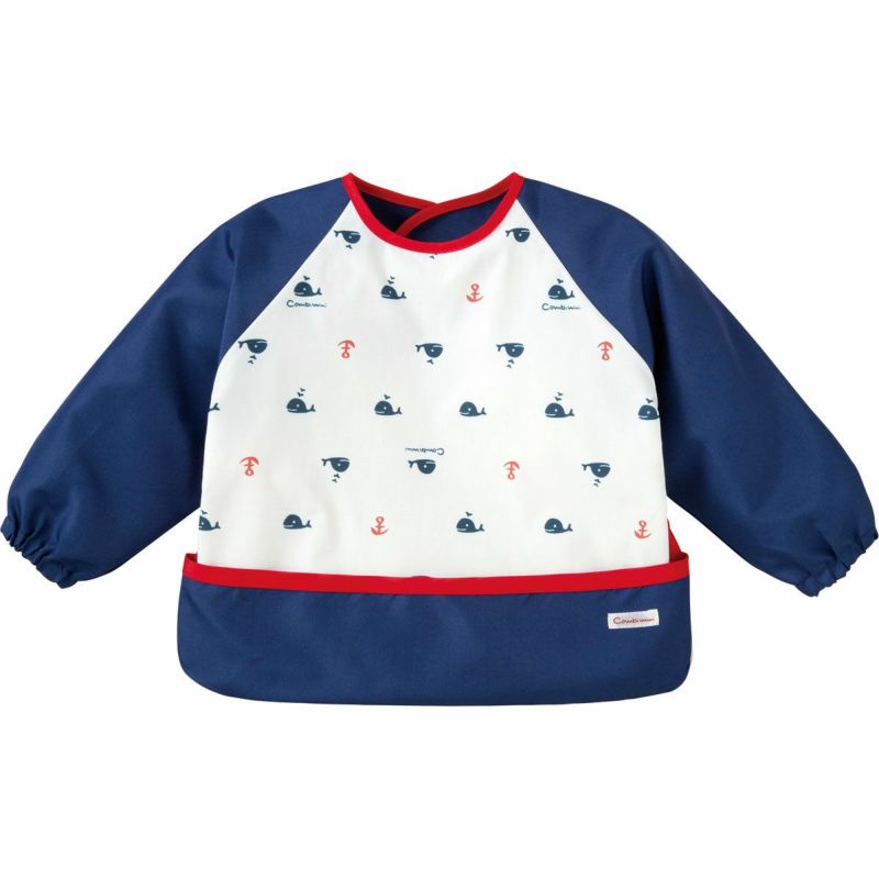 クジラ柄と赤のバインダーがポイント。食べこぼしはもちろん、様々なシーンの汚れ防止に活躍します。