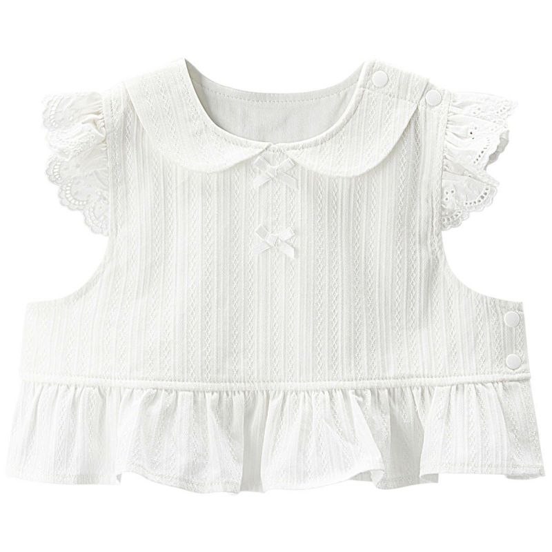 【仕様】左肩と左脇がドット釦で開閉、裏地は撥水加工施したポリエステル生地を使用。袖フリルには上品な印象の綿レースを採用。ベビーギフトとしてもおススメです。新生児ウェアやラップクラッチと重ね着してハレの日を華やかにお過ごしください。(ラップクラッチ品番: