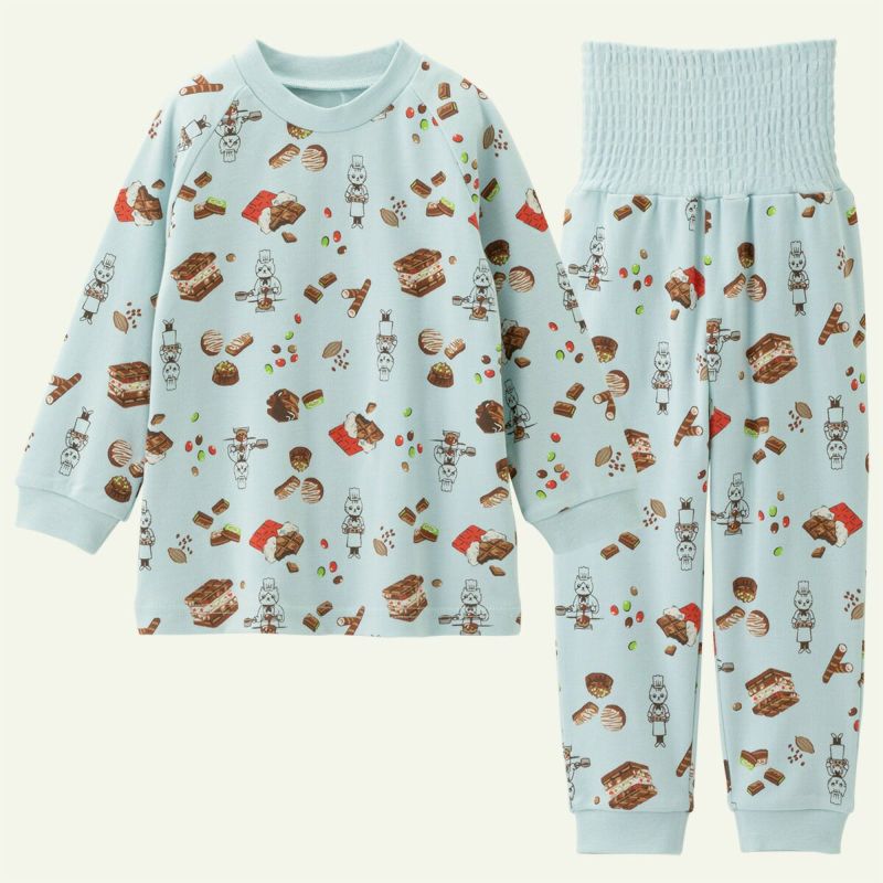 人気のねこコックシリーズに新柄パジャマが登場。今シーズンはパティシエとなってチョコレートボンボンなどおいしそうなスイーツをクッキング。お着替えがスムーズに出来る被りタイプです。やわらかくてなめらかな綿100%のスムース超柔綿素材なので、着心地のよさも抜群。おなかをしっかりカバーするシームレス腹巻付きで寝冷えから守ります。男女ともにおすすめです。※ボトムは洗濯後、ウエストリブの形状を保つために形を整えて平干しで乾かしてください。