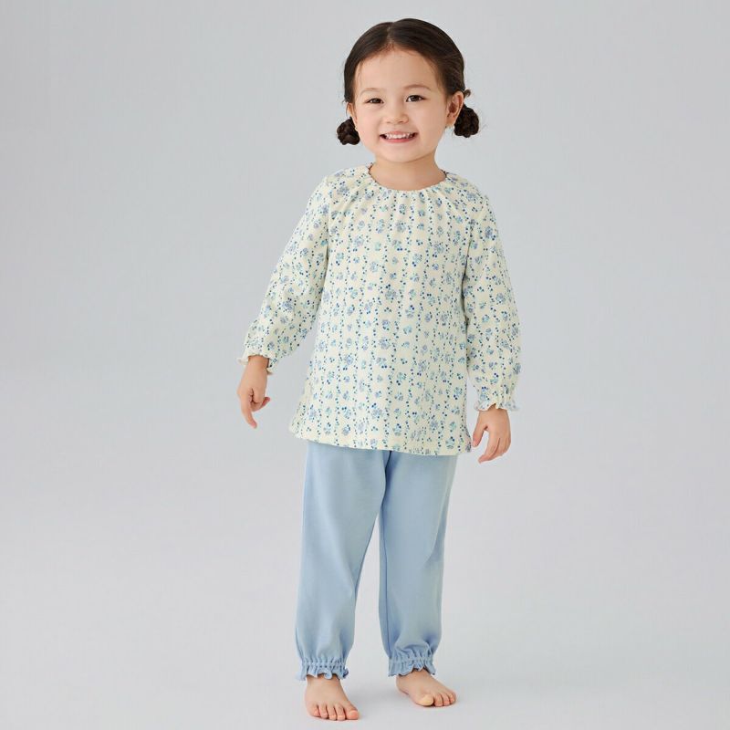のびのび腹巻付きスムース長袖パジャマ(ブルーフラワー)