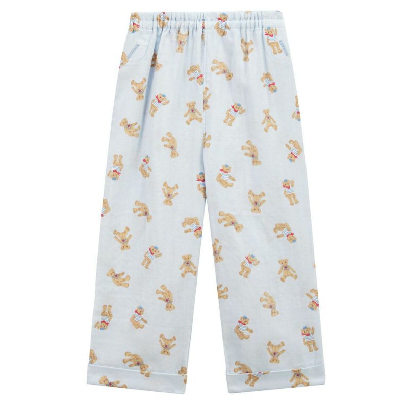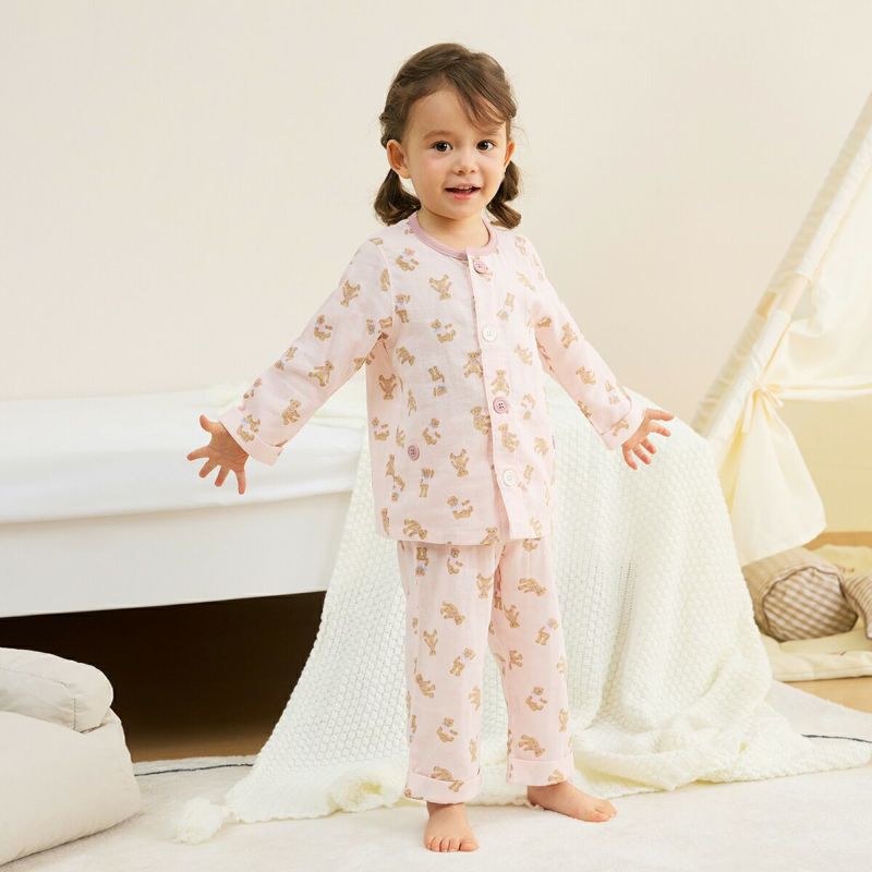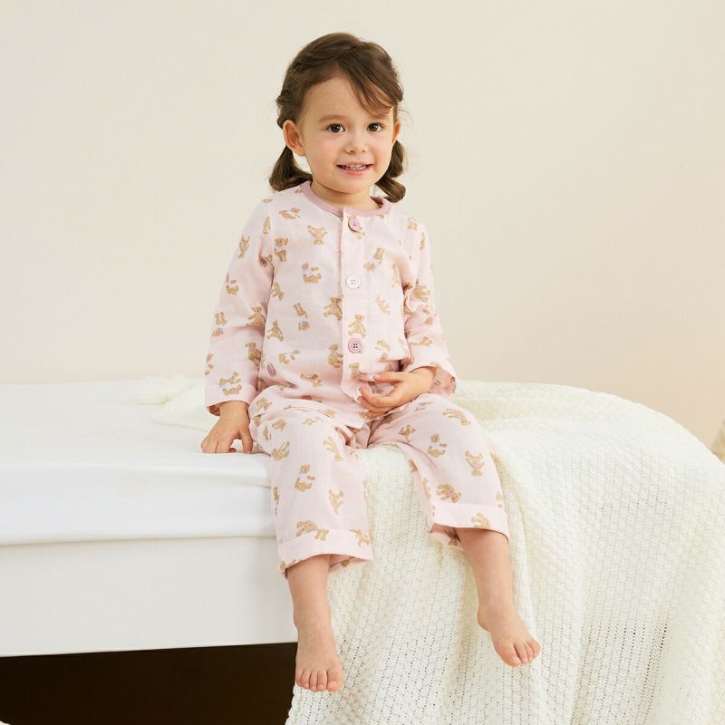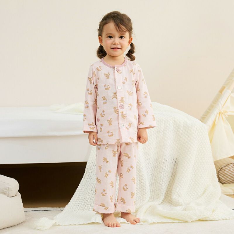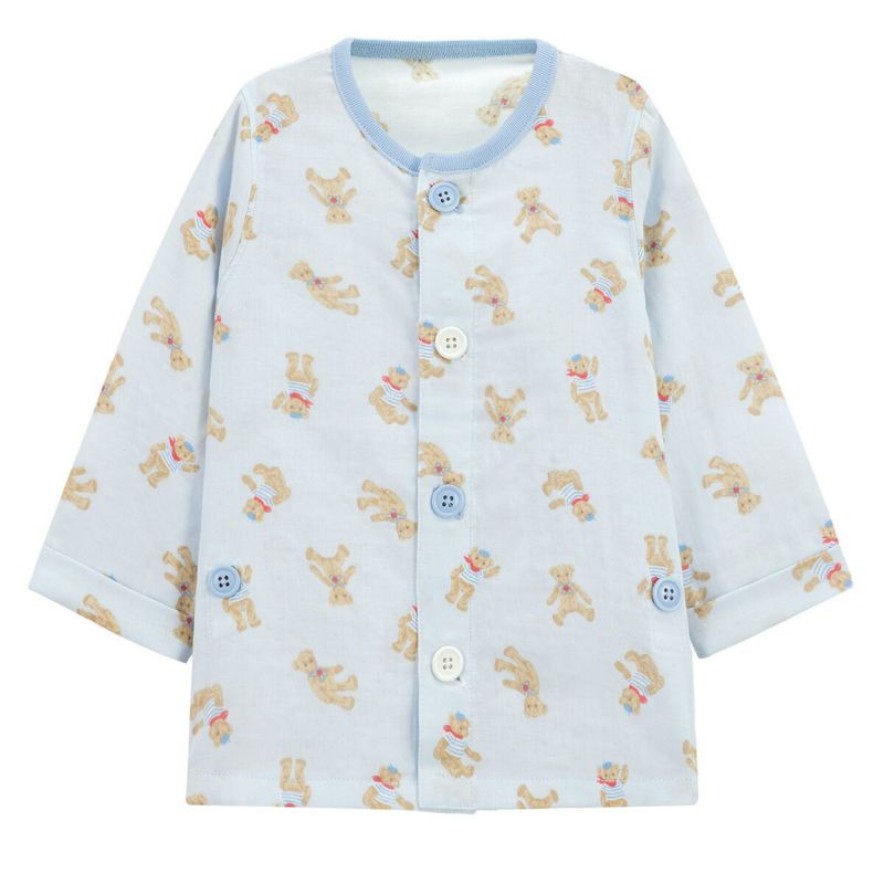 おなか安心ボタン付き長袖前開きガーゼパジャマ(テディベア)