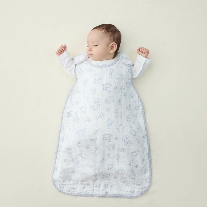【仕様】すべてのボタンが取りはずせるので寝かせたままでお着替えできます。股下にはずり上がり防止ボタン付き。薄く軽い素材なので小さくたためて持ち運びにも便利です。ベビーギフトとしてもおススメです。
