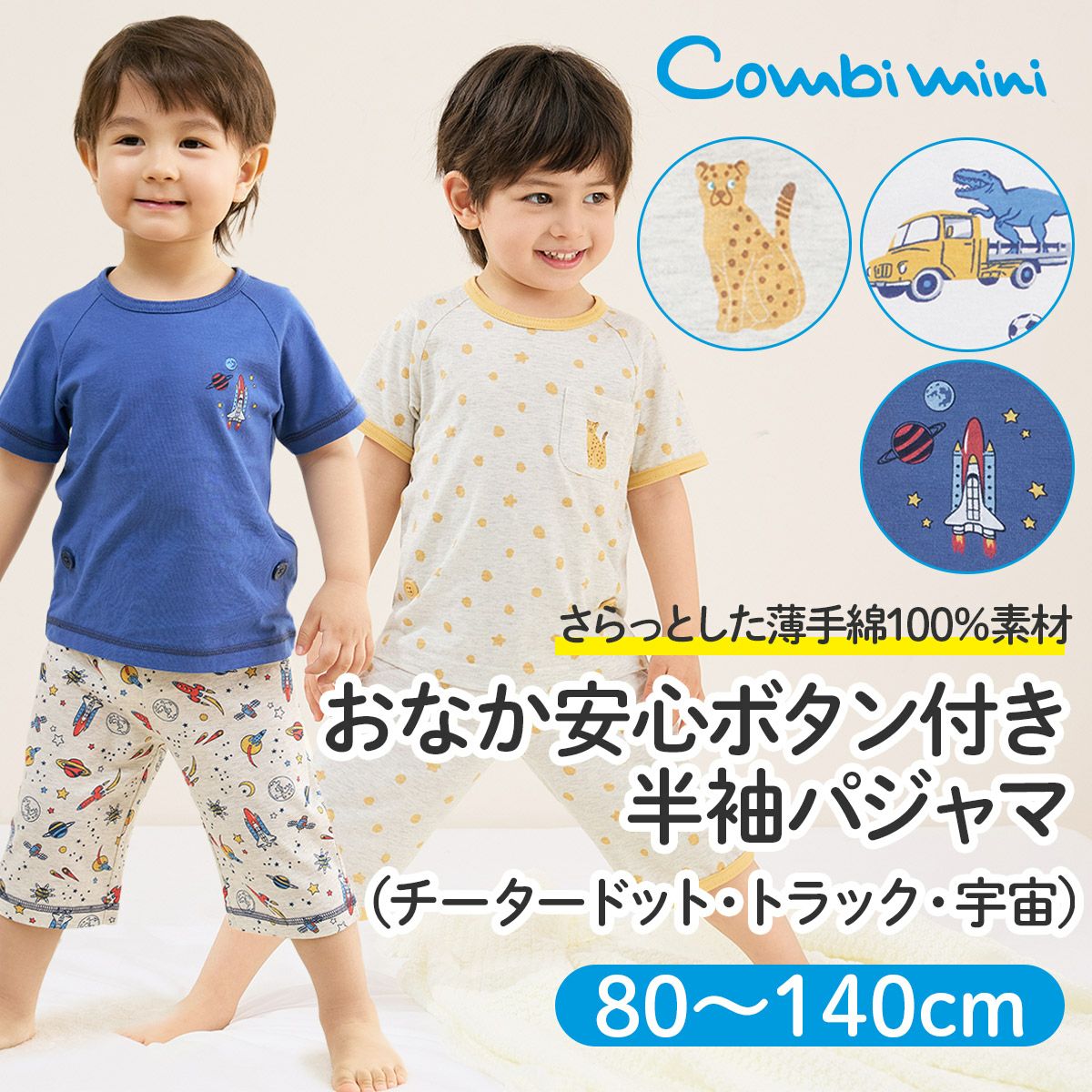 他の画像を見る 30%OFF Boys おなか安心ボタン付き半袖パジャマ(チータードット・トラック・宇宙) 定価 ¥ 3,850 販売価格 ¥ 2,695 税込 ¥ 2,695 税込 お気に入りに登録する