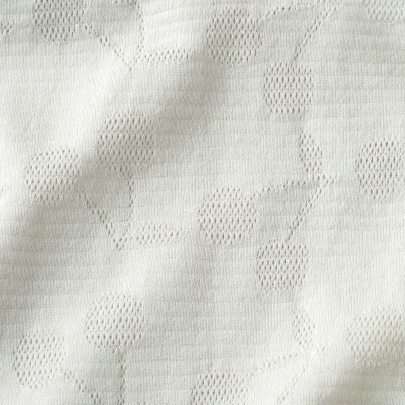 上身頃/綿85%ポリエステル13%ポリウレタン2%(ジャカード)、スカート上/レーヨン75%ナイロン25%(ドットシフォン)、スカート下/綿100%(ブロード)、股/綿95%ポリウレタン5%(スパンフライス)