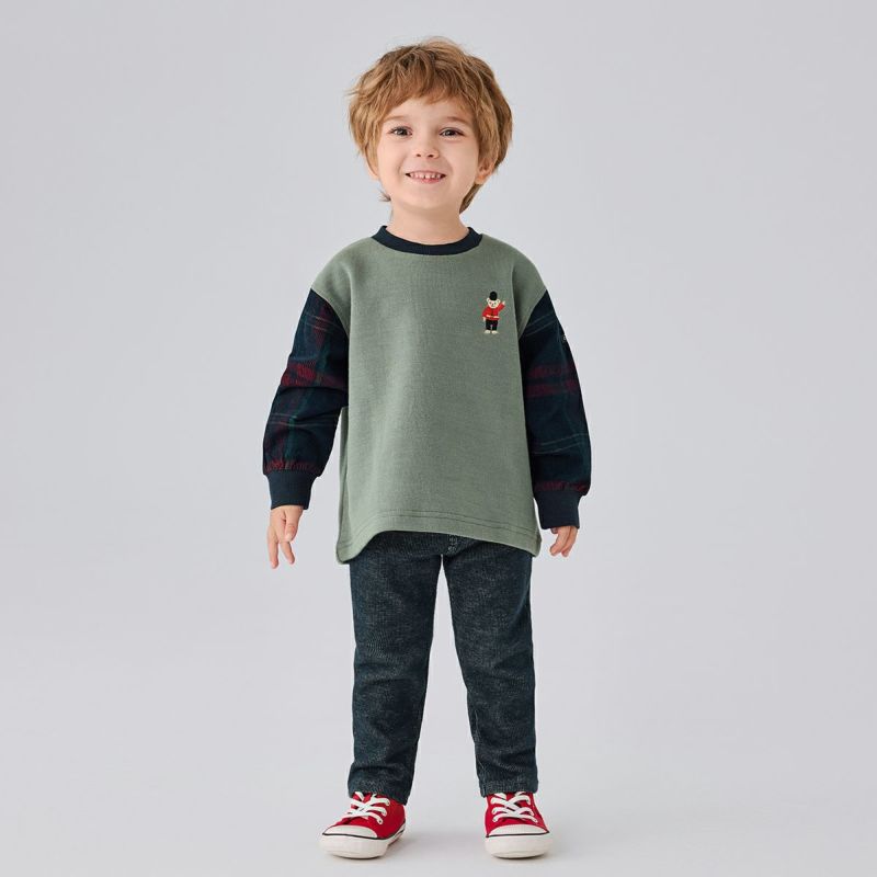 【仕様】袖にはオリジナルチェックを使い、袖口リブ仕様で袖まくりがしやすいのも特徴です。伸縮性もあり着脱時もストレスフリーなのでラクチンにお着替えできます。
