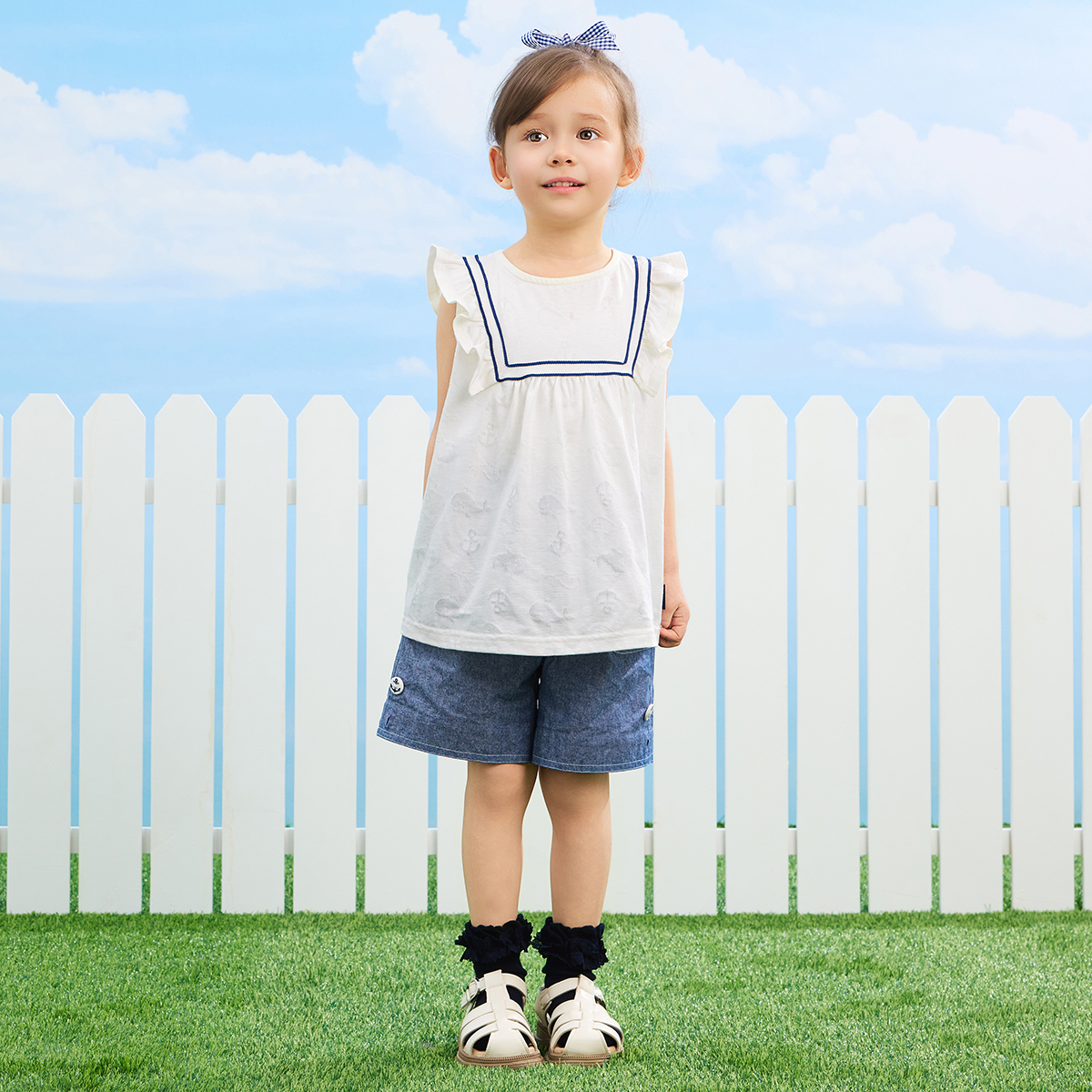 フリル袖セーラーチュニック(くじらJQ)