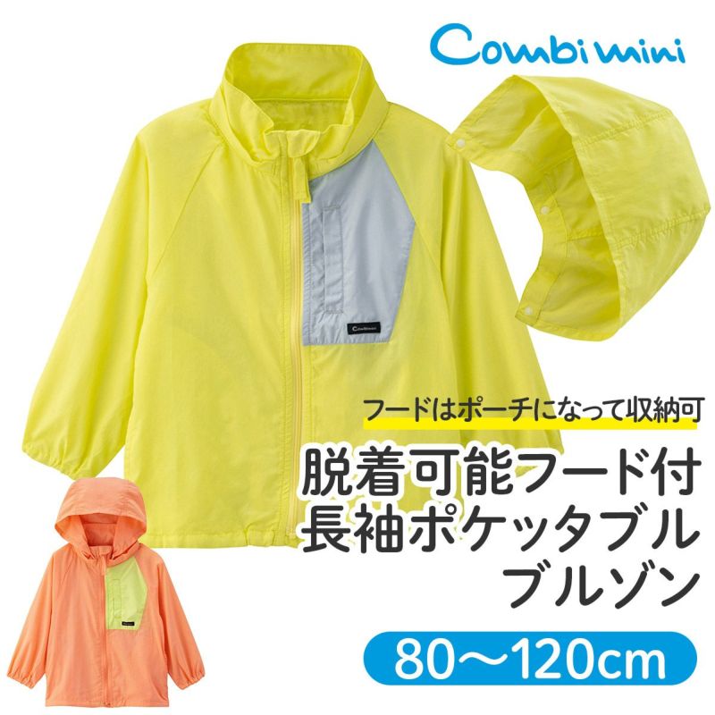 脱着可能フード付き 長袖ポケッタブルブルゾン