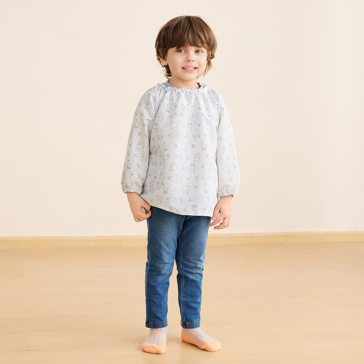 はっ水長袖スモック(サーカス・くじら・フルーツ)