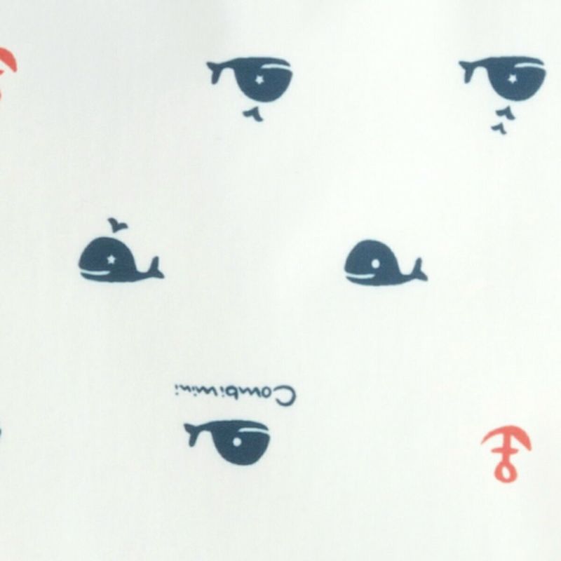クジラ柄と赤のバインダーがポイント。食べこぼしはもちろん、様々なシーンの汚れ防止に活躍します。