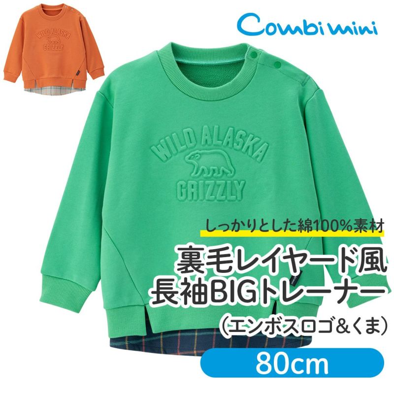 長袖 裏毛 レイヤード風BIGトレーナー(エンボスロゴ&くま)