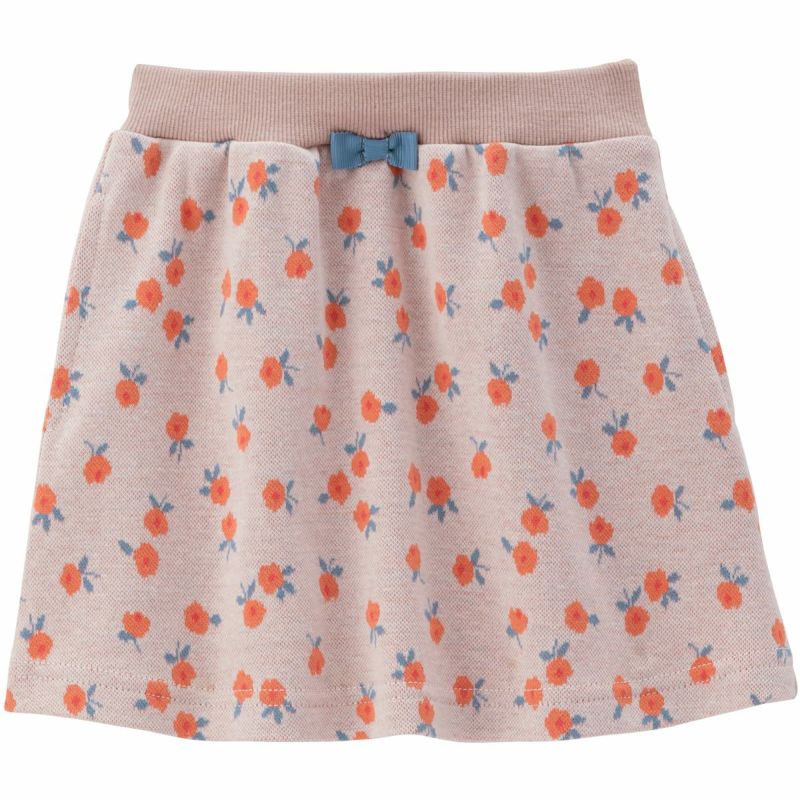 綿100%のしっかりとしたオリジナルのフラワージャカードを使った、ひざ丈スカート。ややAラインの台形シルエットで動きやすく、レトロな花柄が華やかでとってもキュート。両脇ポケット、前後が分かりやすいリボン付き。同素材のトップスもあり、セットアップ風の着こなしもおすすめです。ベビーとリンクコーデも楽しめます。