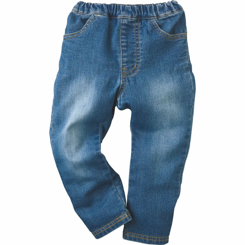 デイリーなスタイリングには欠かせないフルレングスのデニム調パンツ。伸縮性があり動きやすく、やわらかいカットソー素材でお着替えもラクラク。生意気な落ち感もかっこよく、男の子女の子ともにおすすめ。