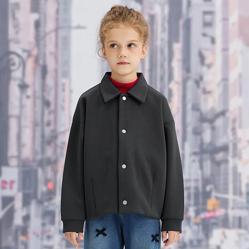 【仕様】秋口の軽く羽織るアイテムとしておススメできる前開きの襟付きブルゾン、両脇には便利なポケット付きで、前開き部分はドット釦なので脱ぎ着もカンタン。様々なシーンで活躍する一着は110~140サイズ展開です。