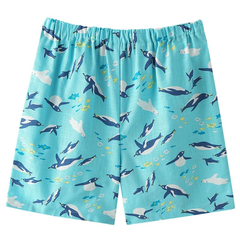 ペンギンやシロクマ、魚たちが水中をスイスイと気持ちよく泳いでいる柄の甚平は、北極の海をイメージしたキレイなエメラルドグリーンで、清涼感を感じさせる一品です。生地は通気性がよく、さらっとした肌ざわりと表情のあるスラブシーチングを使用。袖部分にはハシゴレースを取り入れて、暑い日でも熱がこもらないように仕上げました。