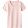 【仕様】半袖は浅いVネック衿のデザインを採用して、首まわりがもたつかないように工夫しました。サイズ展開を拡大して140サイズを新たに追加しています。