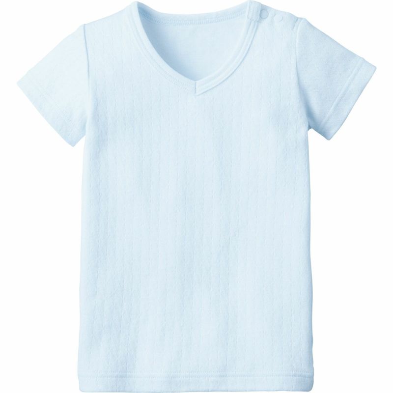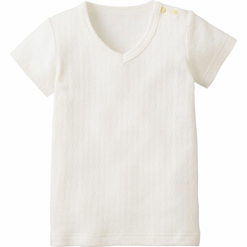 【仕様】半袖は浅いVネック衿のデザインを採用して、首まわりがもたつかないように工夫しました。サイズ展開を拡大して140サイズを新たに追加しています。