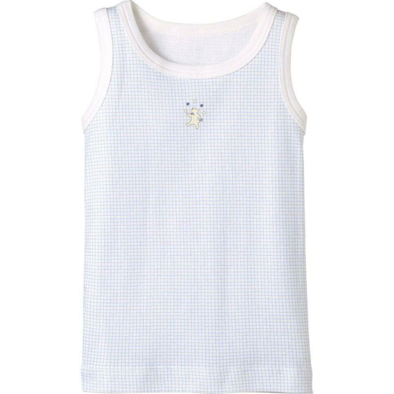 淡い色合いがベビーらしいピンチェックプリントの肌着にタンクトップが新登場。デリケートな肌にもやさしい上質綿を使用したフライス素材。型くずれしにくくお洗濯も安心です。