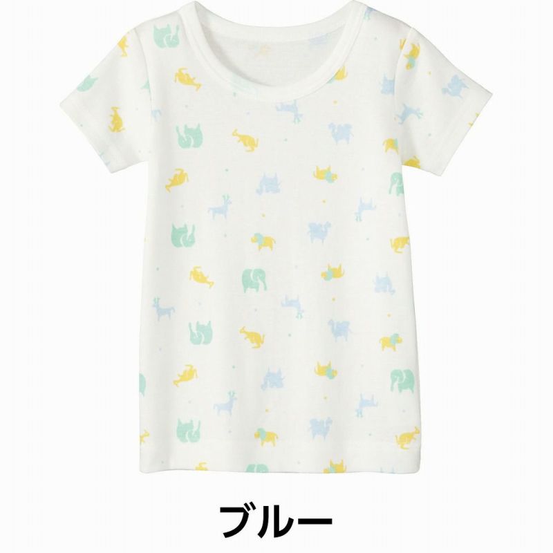 綿フライス素材の動きやすいTシャツ。ユニセックスで着られるパステルカラーのアニマル柄がポイントです。洗っても型崩れしにくいので繰り返しお洗濯しても安心。お着替え用、洗い替え用に便利なアイテムです。