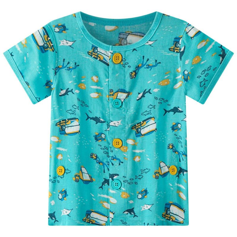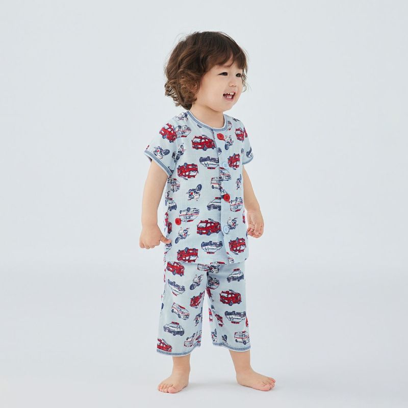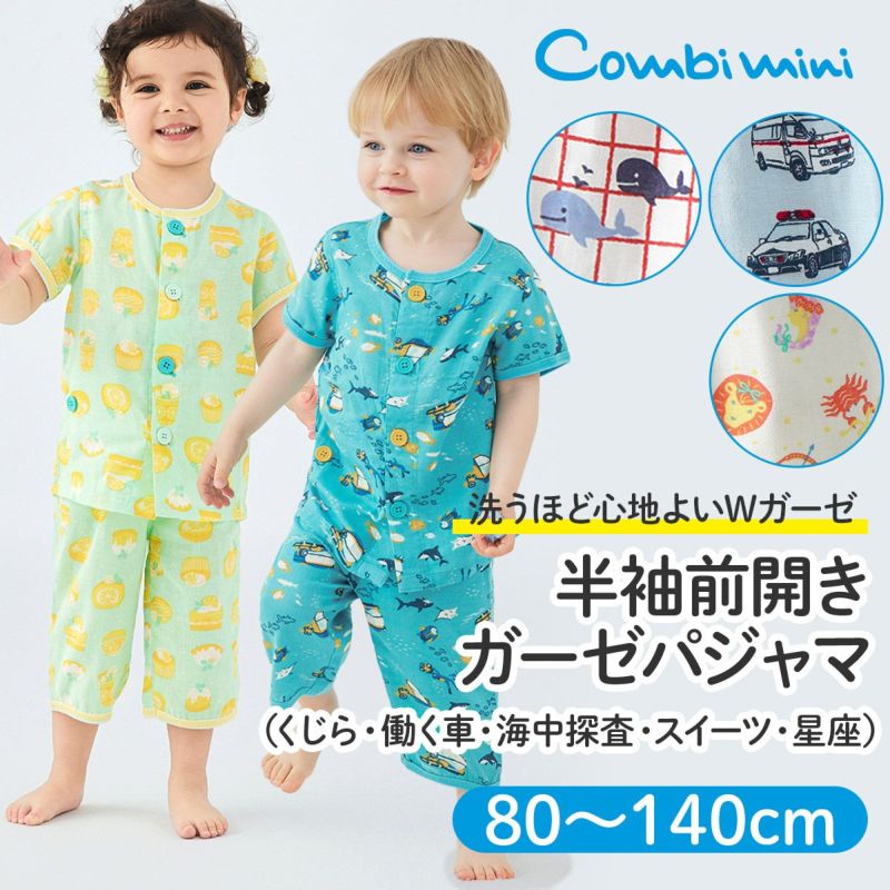 半袖前開きガーゼパジャマ(くじら・働く車・海中探査・スイーツ・星座)