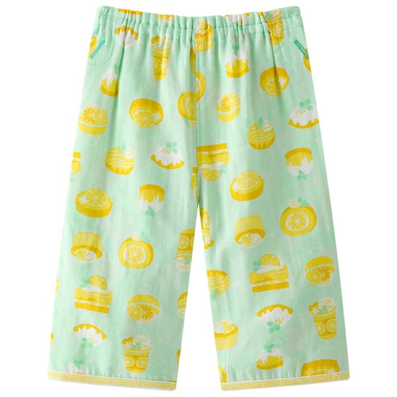 7分丈、110~のサイズはボタン5個、BACKマーク(ボトムのみ)、おなか安心ボタン、ウエストゴム替え口付き