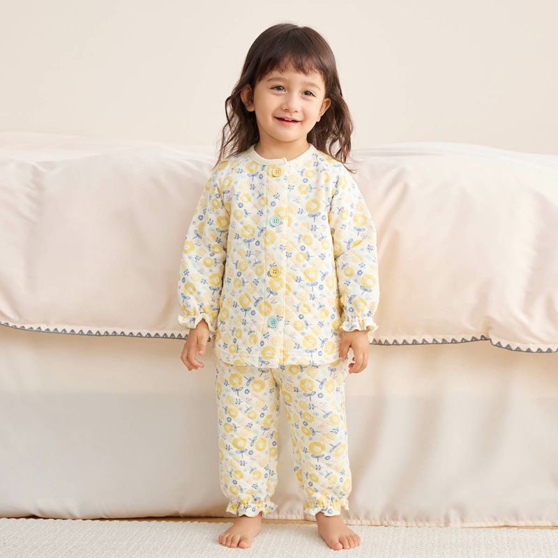 おなか安心ボタン付きあったかキルト長袖前開きパジャマ(プティプレリ)